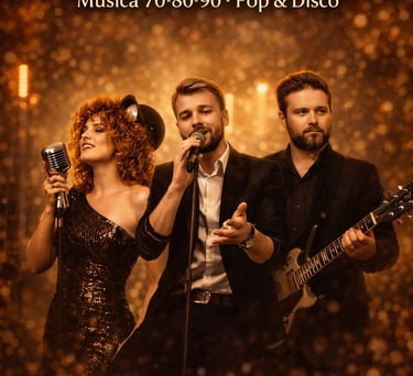 Trío musical con un repertorio potente y muy bailable de los grandes éxitos de los años 70, 80 y 90. Pop internacional, rock clásico, disco y clásicos latinos, ideal para cócteles, cenas, eventos especiales y fiestas temáticas. Show profesional, buena conexión con el público y formato flexible según el tipo de evento.