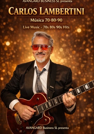 Show en directo con grandes clásicos de los 70, 80 y 90, pop y rock suave, ideal para crear ambiente elegante y cercano.