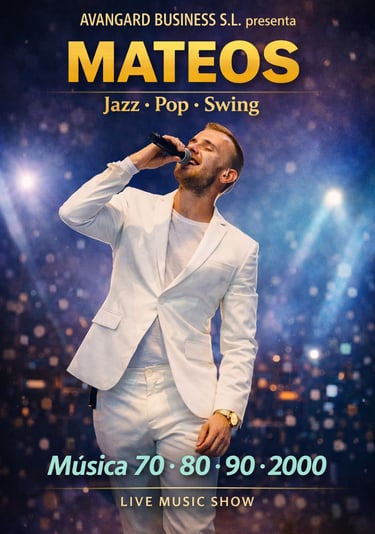 Un espectáculo elegante inspirado en Broadway y Las Vegas, con clásicos de los años 60, 70 y 80 (swing, jazz, pop clásico y grandes estándares). Ideal para galas, cenas show y eventos especiales.