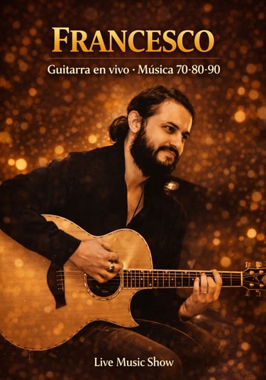 Guitarrista y cantante con repertorio pop-rock internacional. Formatos disponibles: solista, dúo, trío o banda completa según tu evento. Horario pactado, consultar precio.