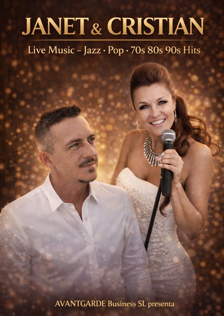 Cantante inglesa con gran conexión con el público y teclista de primer nivel, con un repertorio pop, soul y clásicos bailables para animar cualquier noche. Ideal para terrazas, fiestas y hoteles con público internacional. Horario pactado, consultar precio y duración.