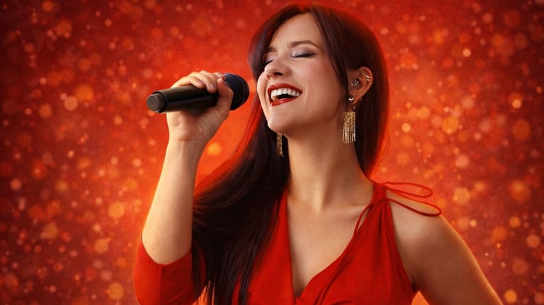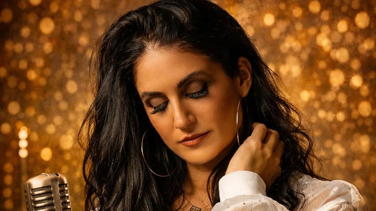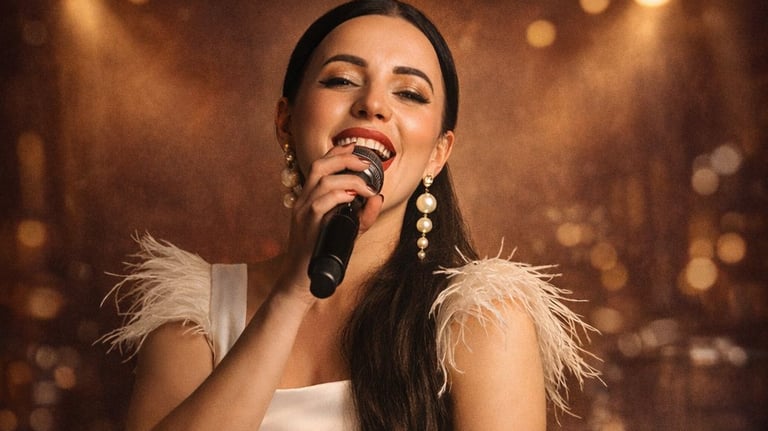 Show vocal femenino elegante con repertorio de los años 70, 80 y 90, ideal para noches de jazz, pop y swing.