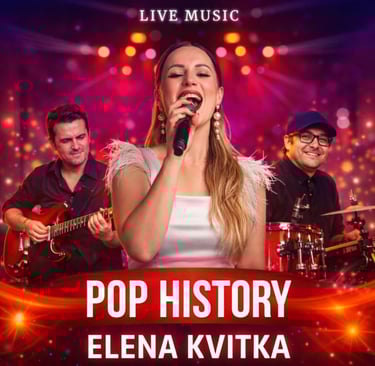 Elena Kvitka es una estrella internacional con una voz poderosa y muy presente, al estilo de los grandes shows de Las Vegas. Domina el jazz, foxtrot, pop, swing y standards con una elegancia natural, y ha trabajado en programas de televisión, orquestas y grandes bandas, brillando siempre en colaboración con otros artistas. Cada actuación suya convierte el escenario en un auténtico espectácul