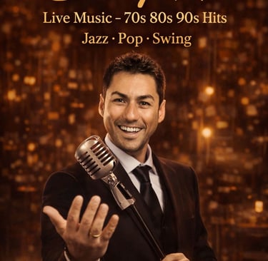 Show elegante y moderno, con voz en directo y selección “best of” de las décadas doradas. Perfecto para establecimientos premium y eventos que buscan calidad y clase.