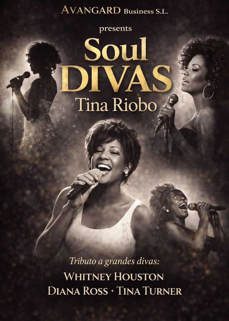 Tina Riobo rinde homenaje a las grandes divas del soul y el pop: Whitney Houston, Diana Ross, Tina Turner y Aretha Franklin.