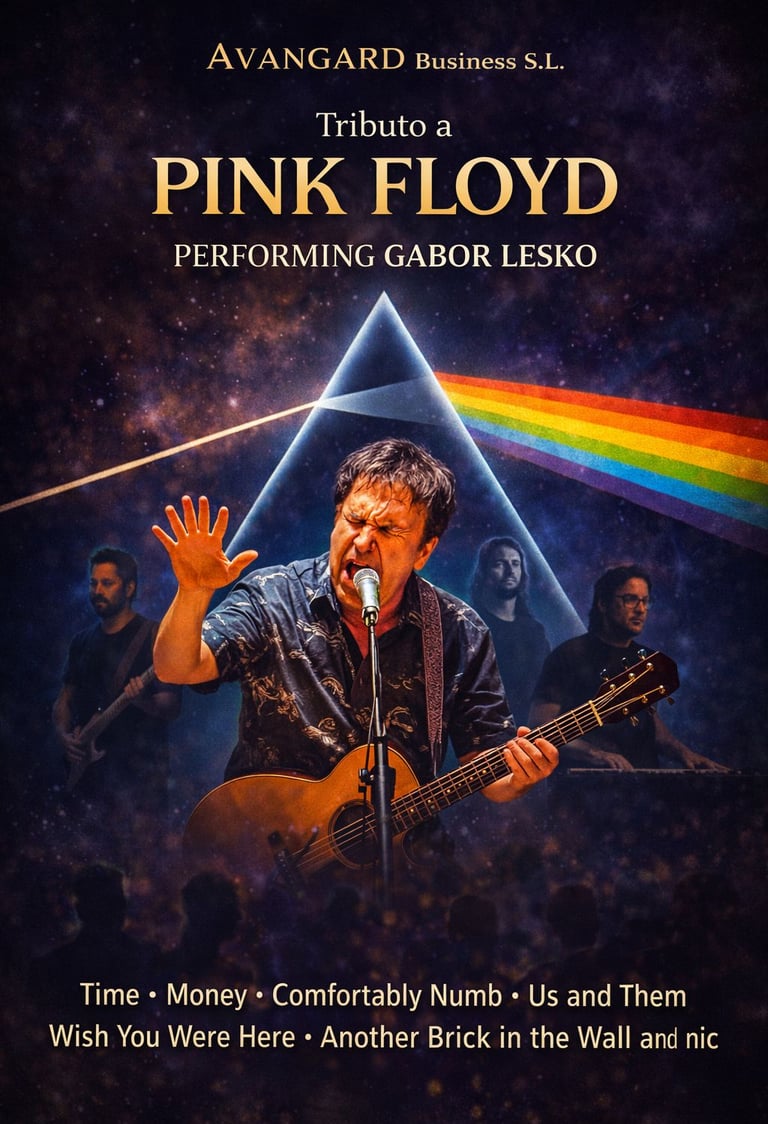 Un viaje por los grandes clásicos de Pink Floyd con Gabor Lesko y su banda, sonido muy fiel al original y visuales impactantes.